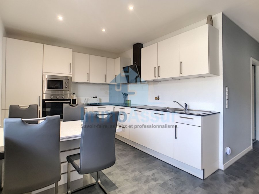 Espace entrée ouvert sur living et cuisine équipée, le tout avec ( - 27m2) donnant accès au balcon de 5,6m2