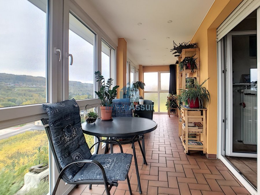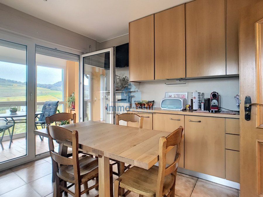 - Hall d'entrée, WC séparé, cuisine équipée, salle à manger/séjour avec feu ouvert, les deux pièces donnent accès sur la loggia totalement vitrée avec jolie vue dégagée sur la Moselle.